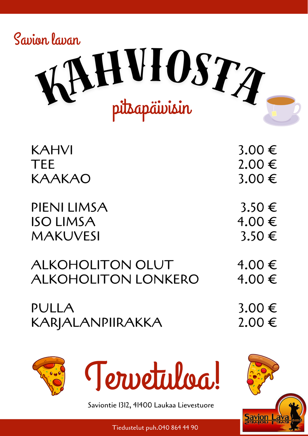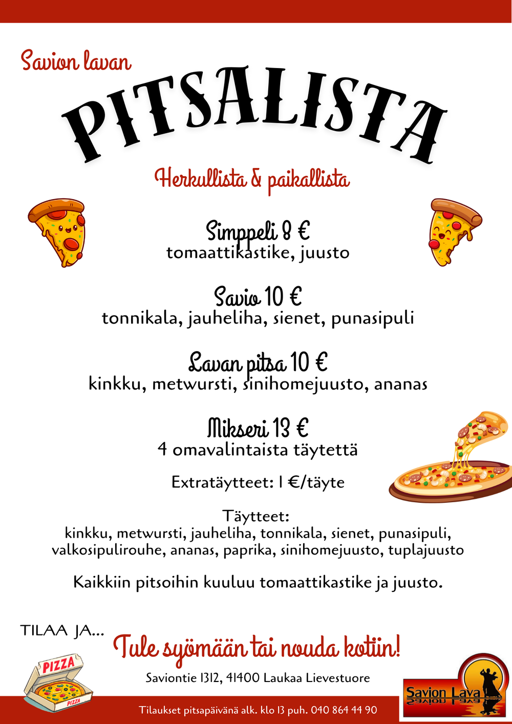Savion lavan kahviossa järjestetään pitsapäivä lauantaina 28.2. klo 12-16